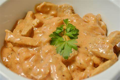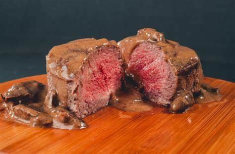 Clássico da cozinha francesa, strogonoff filé mingon com champions, servido com arroz, batatas rústicas e salada. Feijão opcional.