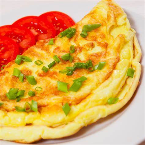 Deliciosa omelete de queijo e tomate, servido com arroz, feijão, farofa, chips e salada.