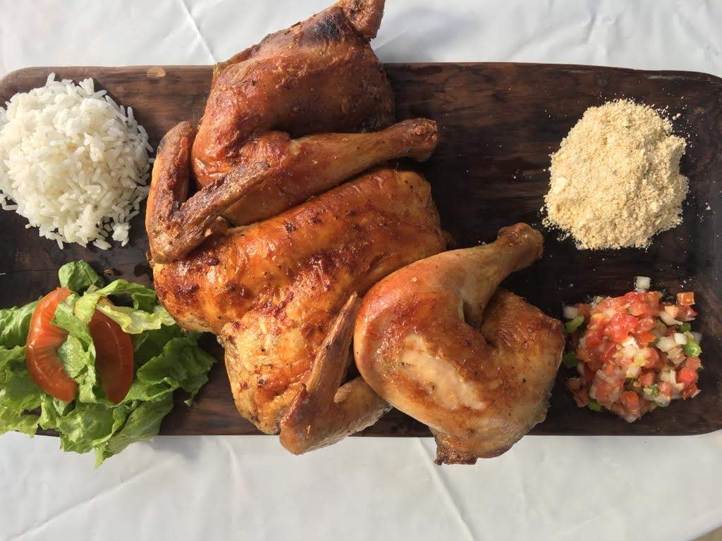 Delicioso frango assado na brasa, totalmente diferente dos frangos assados em assadeiras.